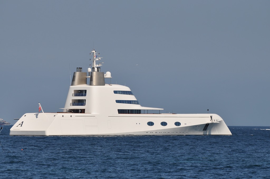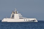 Detta spektakulära fartyg är byggd av det tyska varvet Blohm & Voss och ritad av den franske designgurun Philippe Starck. Fartyget är 119 m långt och ska, enligt vad jag googlat fram, ägas av en rysk oligark.