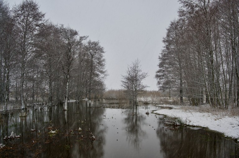 Här en bild från en promenad som Oscar och jag gjorde för snart två veckor sedan. Vi har haft vintrigt ungefär sedan dess med snö och kallt men sedan igår har mesta snön smält bort.